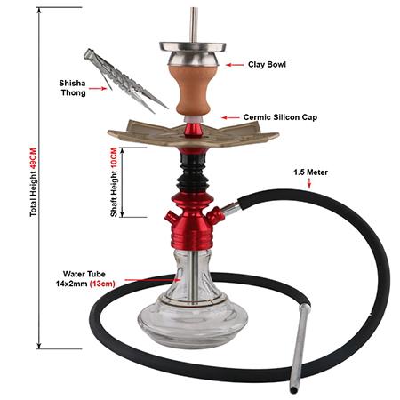 - تُصنع الأجزء الرئيسية للشيشة من الألومنيوم، ويصل ارتفاعها إلى 49 سم.