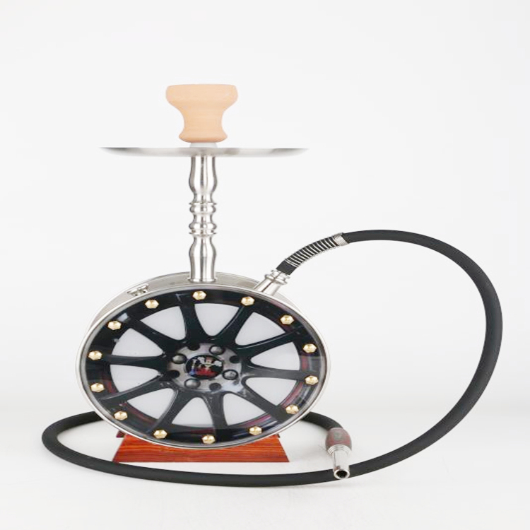 - تتميز الشيشة بهيكل يشبه العجلة مما يجعلها تبدو جميلة وجذابة بمظهرها الفريد من نوعه.