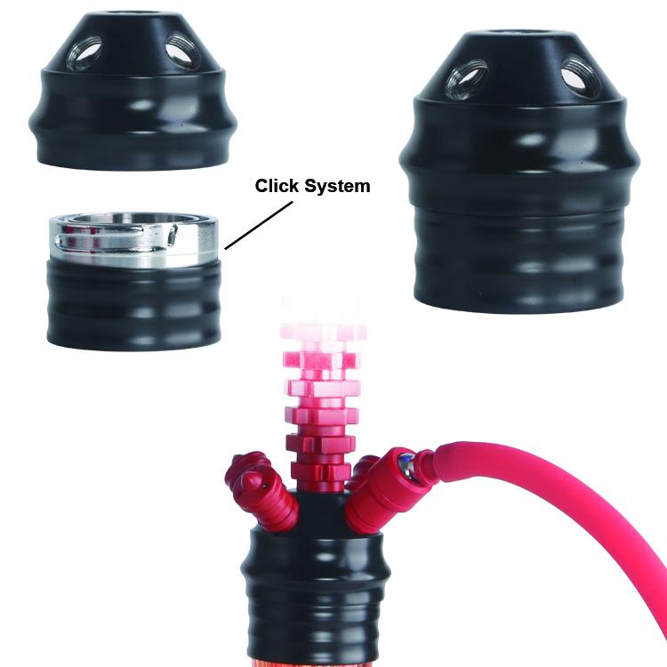- تتميز بهيكل قابل للتفكيك بحيث يُسهل من عملية توصيل الأجزاء مع جسم الشيشة القائم (الساق) ومع القاعدة، كما تتسم بالإحكام الشديد الذي يمنع أي تسرب للهواء.